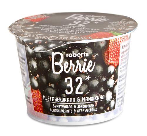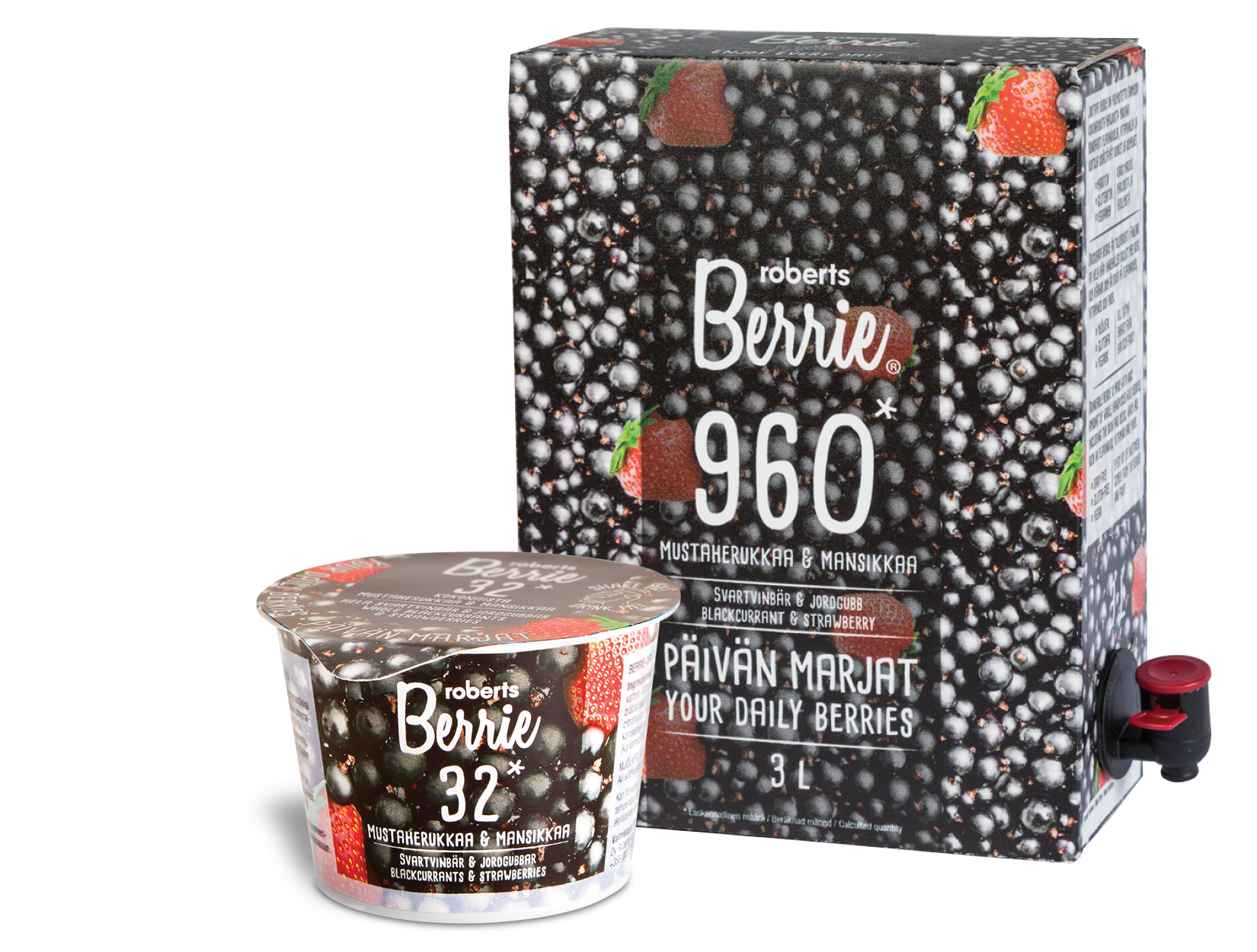 Egy pohár (100 ml) Berrie Feketeribizli & szamóca 32 szem egész gyümölcsből készül. (számítási mennyiség)