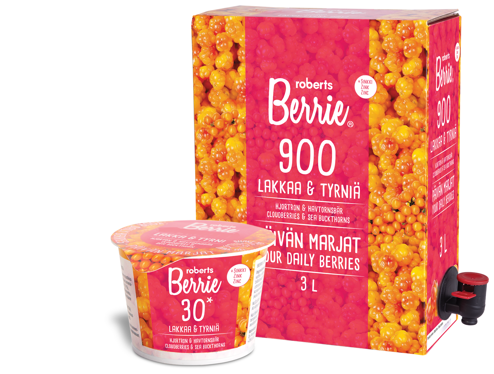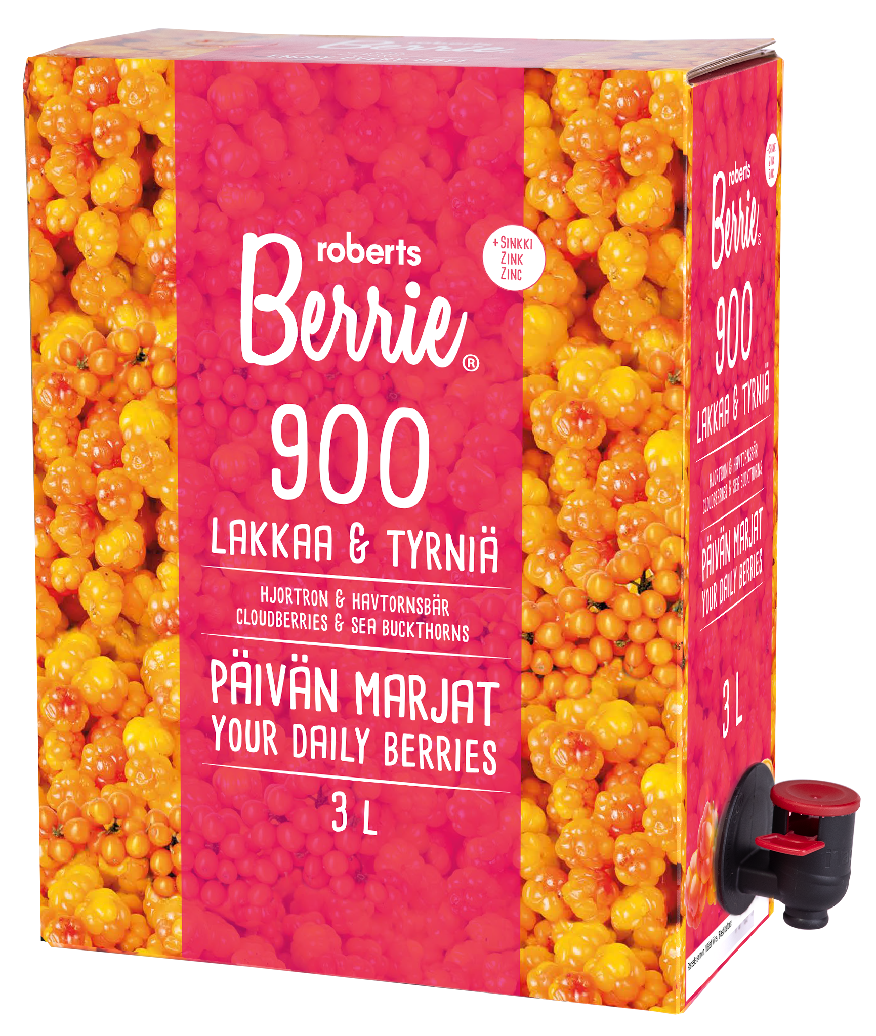 víz, zúzott egész mocsári hamvas szeder (14%), zúzott egész homoktövis (12%), természetes almasűrítmény, almapüré, citromlé, citrus rostok, kálium-szorbát, cink-laktát