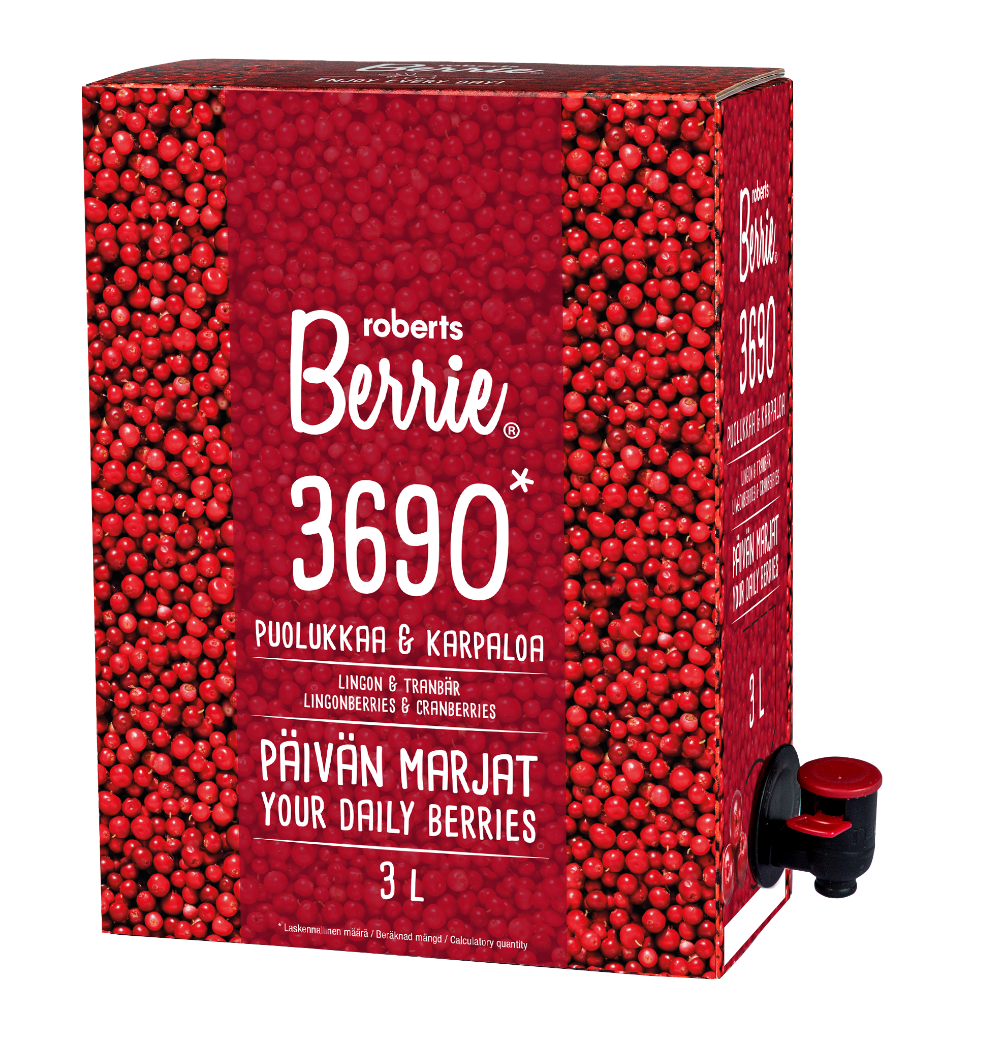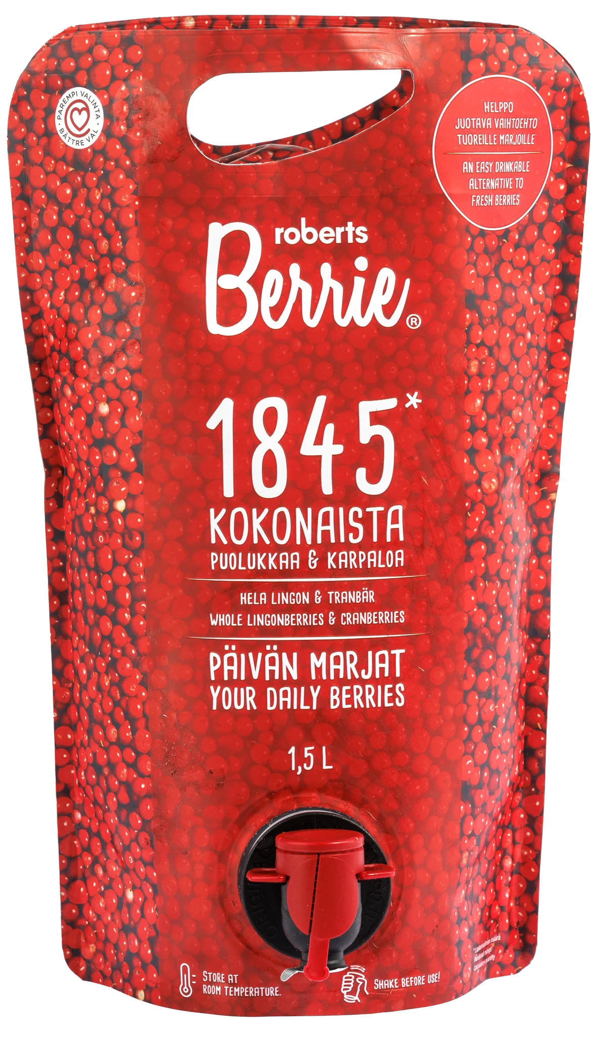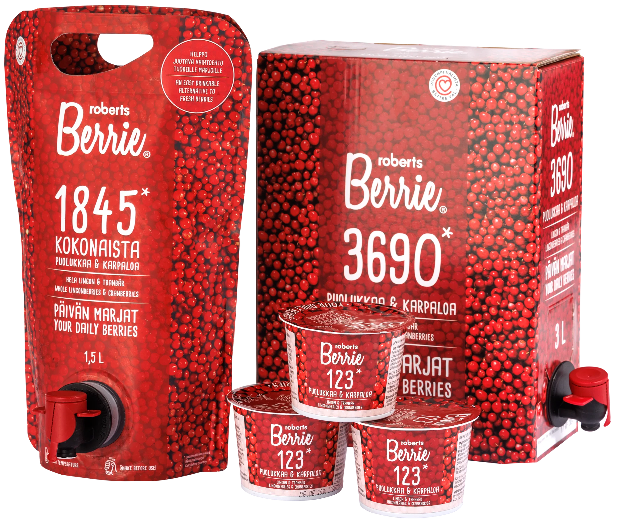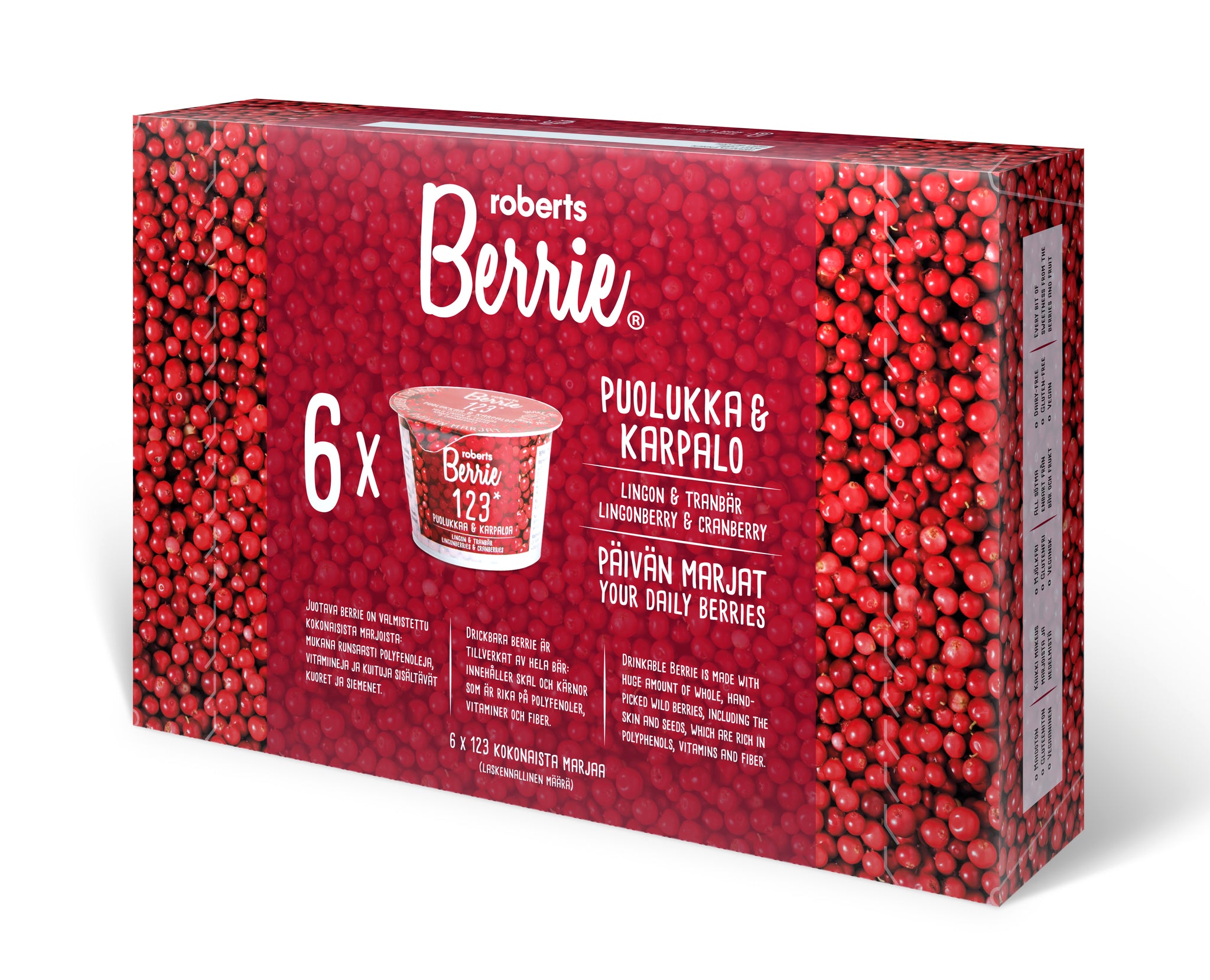 Egy pohár (100 ml) Berrie Vörösáfonya + tőzegáfonya 123 szem egész áfonyából készül. (számítási mennyiség)